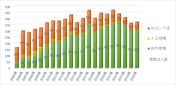 「不妊患者」とは、不妊症で来院された患者さんです。2・3回来院され、検査だけして来院されなくなった方なども含まれています。