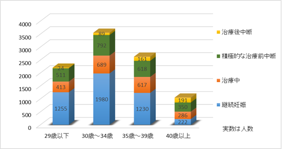 2. 継続妊娠された患者さんの年齢別治療内訳